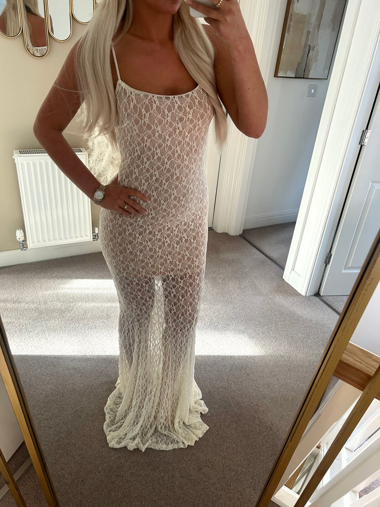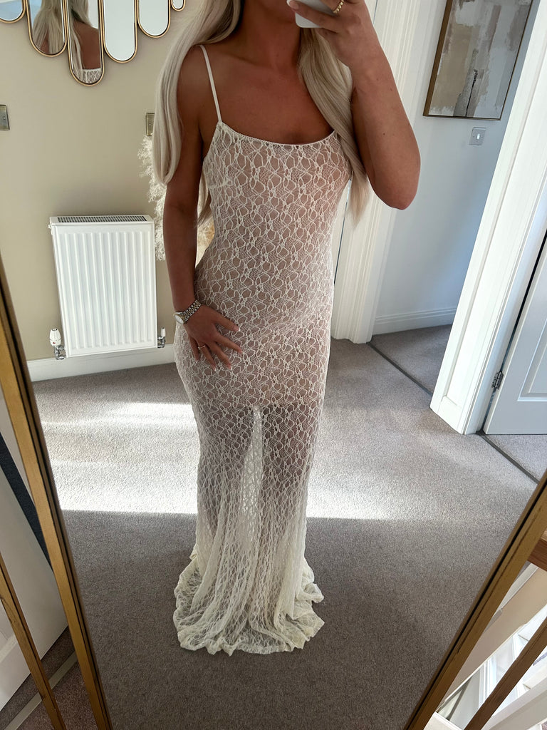 Cream Lace Long Maxi Dress