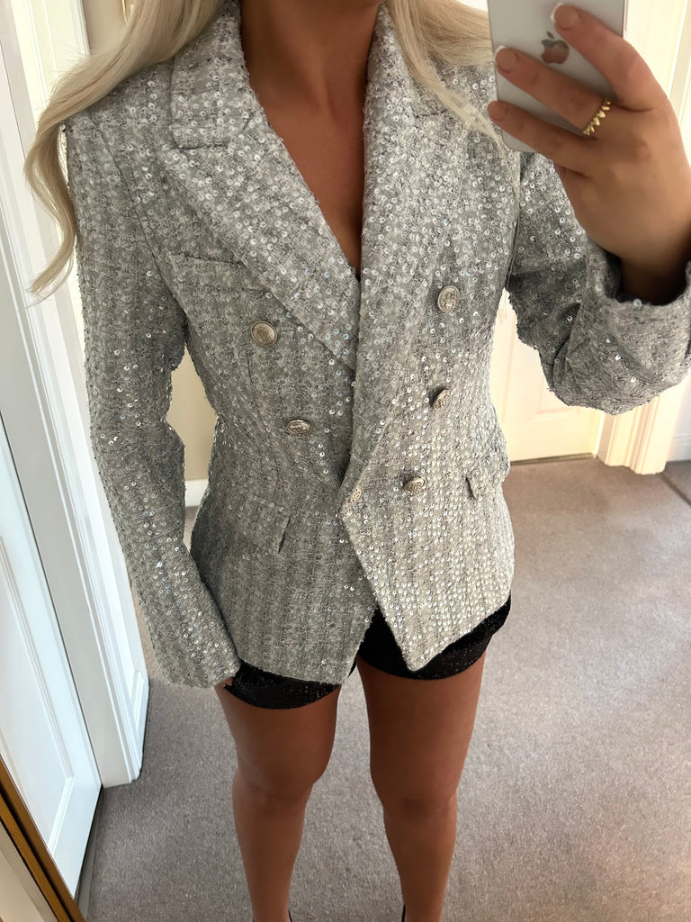 Grey Sequin Double Breasted Blazer is perfect for party season, can be dressed up or down