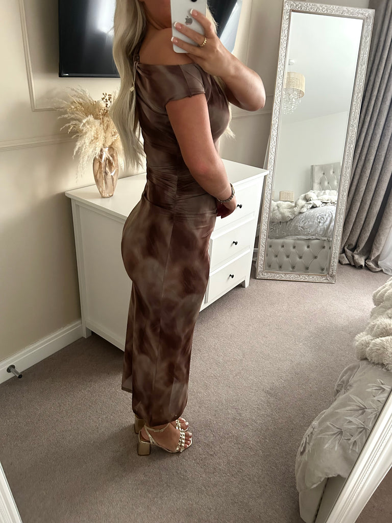 Marble Print Asymmetric Shoulder Maxi Dress